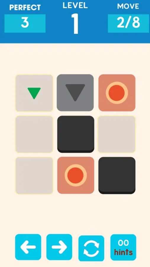 The shapes always slide unless they are blocked, to solve the line puzzle, move all the shapes onto fill the coloured squares.