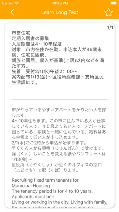 本開発は、日本語学習者はスマホ端末で独学しながら、日本語で記載される生活情報を読解できる能力が身に付く学習コンテンツの構築を目的とする。学習提示項目を「漢字>語彙>単文>文章」と四つのステップに分け、ステップごとに「学習>練習>クイズ」と段階を設けたことにより、漢字から文章へ縦断的に学べ、漢字学習から読解へと意識付けできるアプリがない現状を打破したことになる。