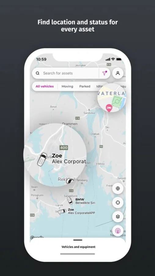 Quickly see location among your drivers combined with who’s driving, idling and who stopped.