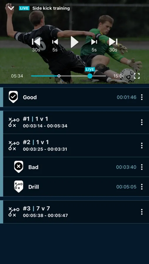 The coach can schedule his own trainings and practices, during the practice he can mark specific drills and interesting points