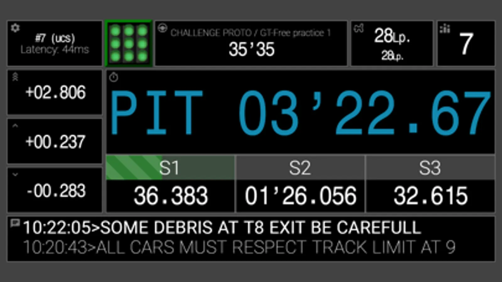 • Reminder: For now with the free version of ITS LIVE DISPLAY you can access all the data but you are limited to 6 min or 2 total laps per session