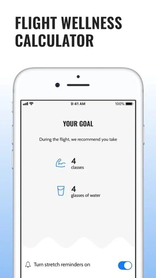 Our flight wellness calculator, helpful reminders, and stats will keep you feeling great no matter how long you’re in the air.