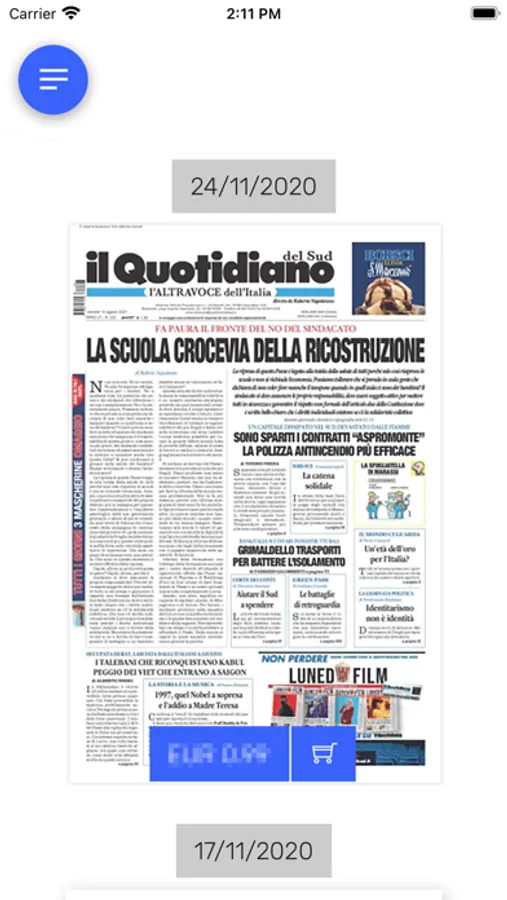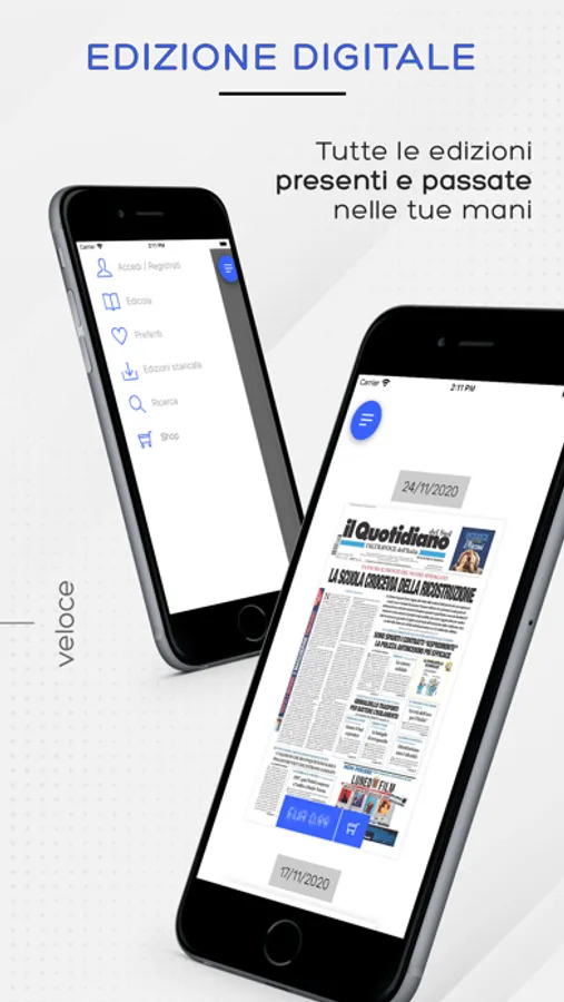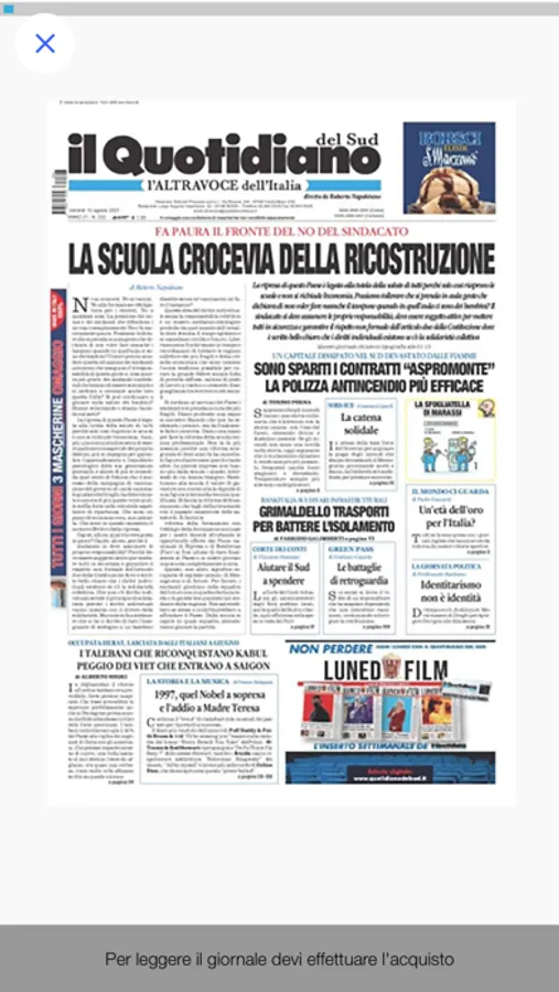 Potrai scegliere l'edizione del giorno o un arretrato e consultare gratuitamente la prima pagina oppure acquistare l'edizione completa. Sfogliando le pagine del quotidiano, ingrandendo i contenuti, ruotando il dispositivo, sarai libero di leggere in piena comodità.