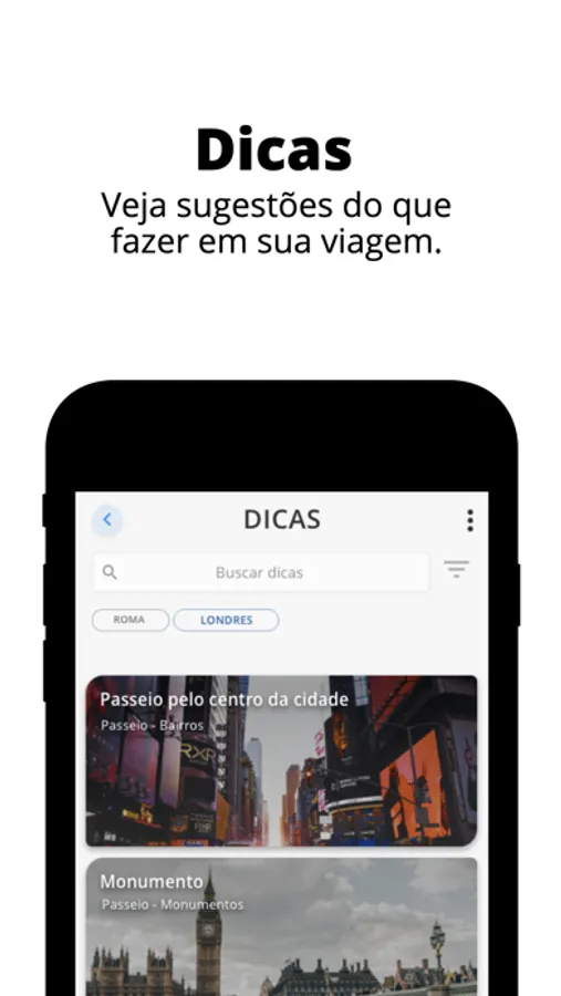 O app da Teresa Perez é exclusivo para clientes da agência. Os roteiros da viagem estão disponíveis com hospedagem, day by day e passeios programados. Inclui sugestões de restaurantes, bares, hotéis e serviços.
