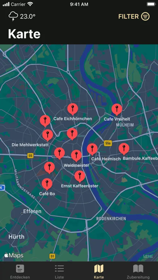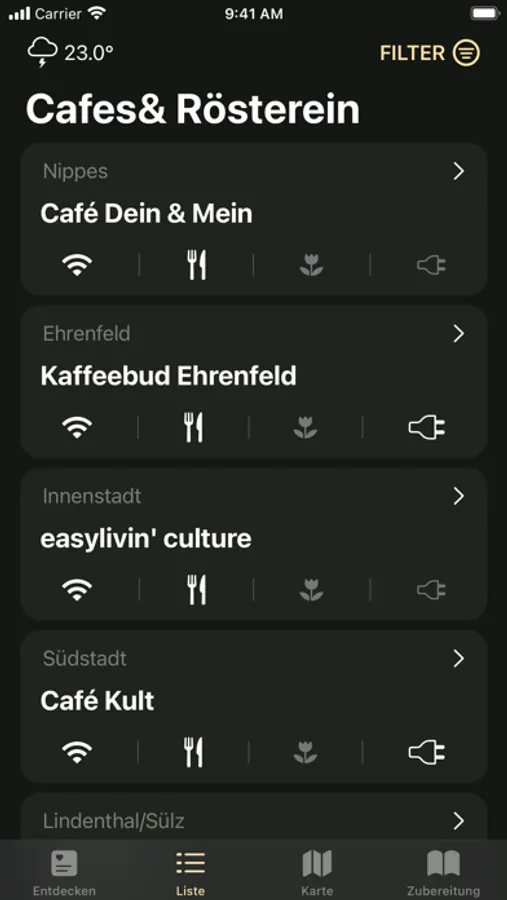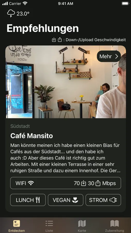 Suche in über 50 Cafés nach deinem neuen Lieblingsort zum arbeiten. Dabei kannst du die Cafés nach Wlan, Lunch, veganem Essen und Steckdosen filtern.
