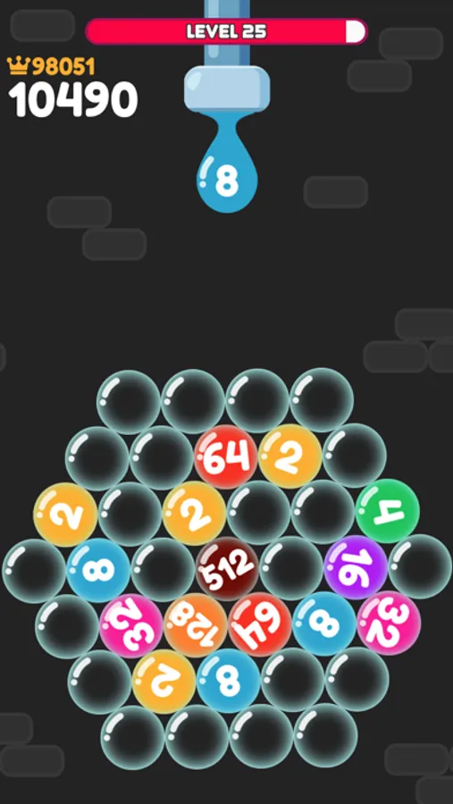 Bubbles of the same number and colour will merge together to create new bubbles!