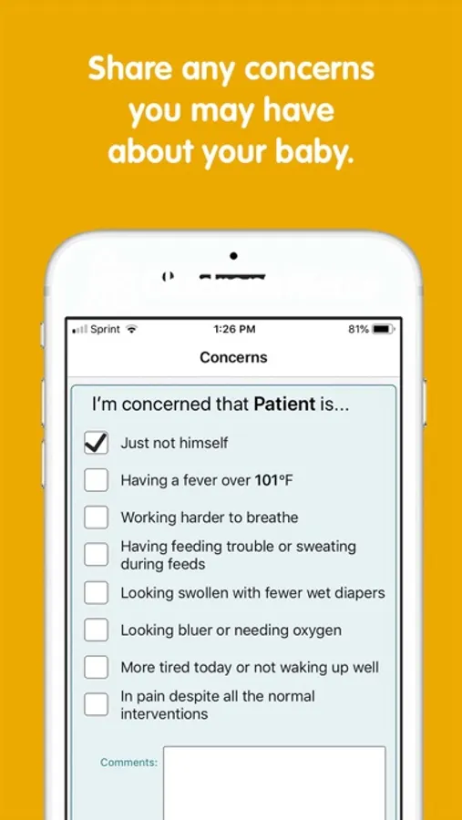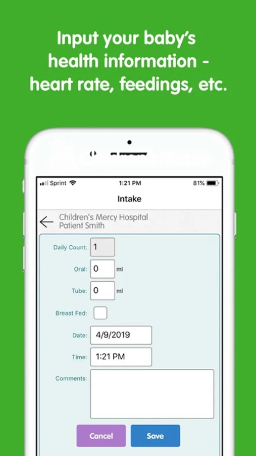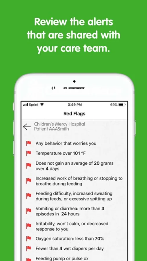 The app is not intended to diagnose, cure, treat, mitigate or prevent disease or health conditions. The app is a tool caregivers can use at home to assist with disease management of inter-stage babies.