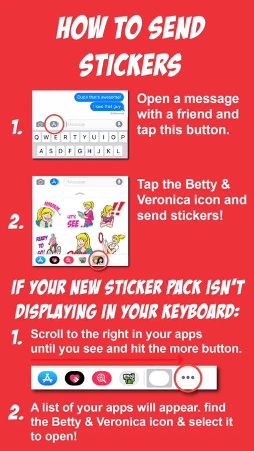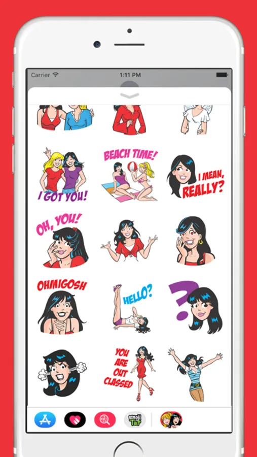 Turn the sass up to 11 with these Betty and Veronica stickers, perfect for you and your bestie! The two prettiest and most fashionable members of the Riverdale gang are ready to help you add some cool vibes to your messages. Includes 24 static stickers.