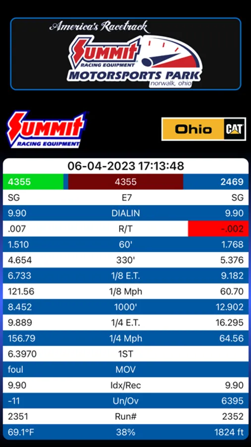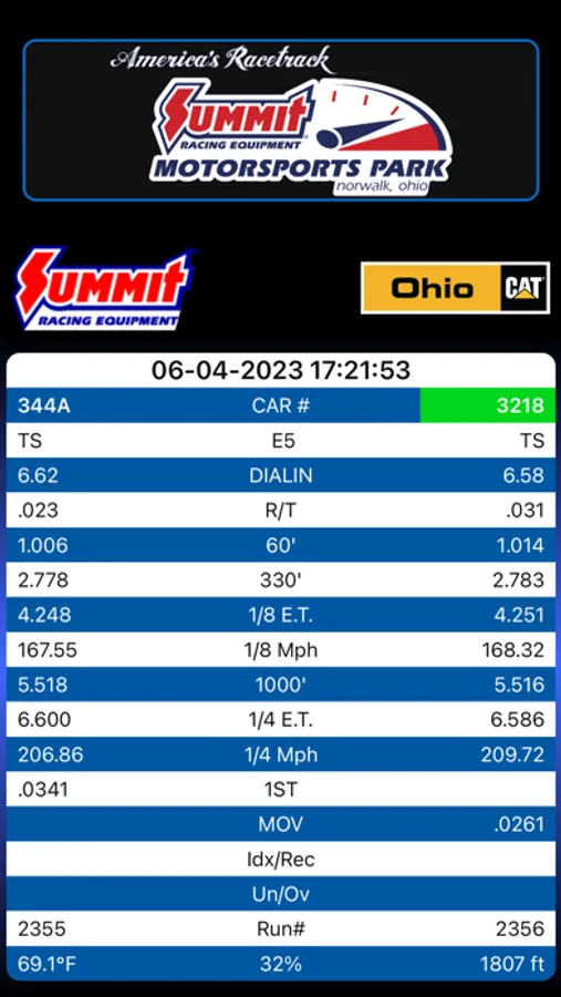 Drag racing Time slips from the Summit Motorsport Park race track are currently printed using a receipt printer at the race track. This app shows the same time slips information on your phone.