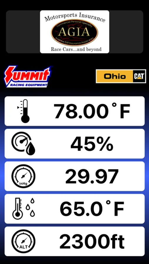 The app shows the weather station information and calculate the Density Altitude automatically to help the racers to tune their engines before racing. A first in the industry.