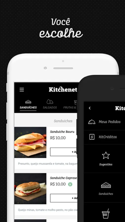 Selecione um sanduíche, salgado ou o que mais desejar.