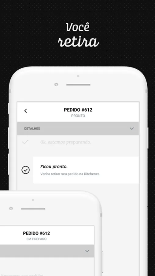 Te avisamos quando ficar pronto. Aí é só você ir até a Kitchenet e retirar seu pedido .