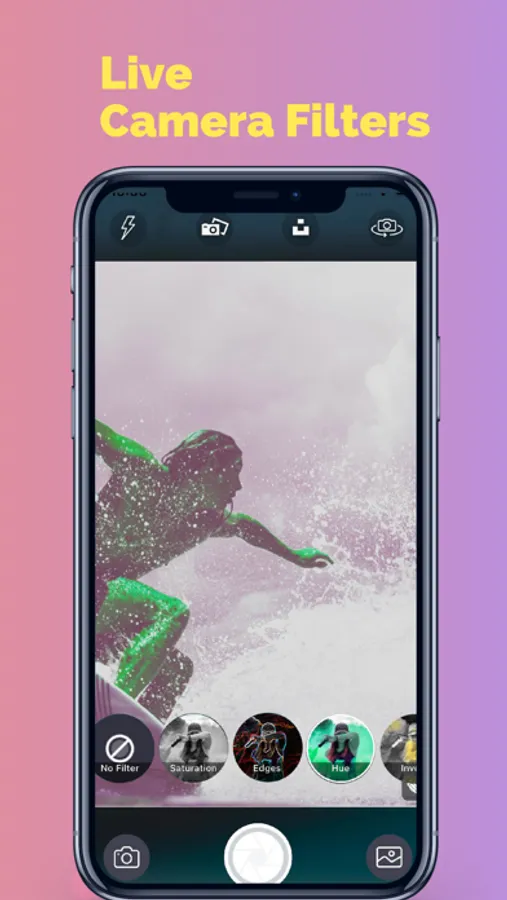 -Take photos and apply live color effects to make them look as edited by a professional.