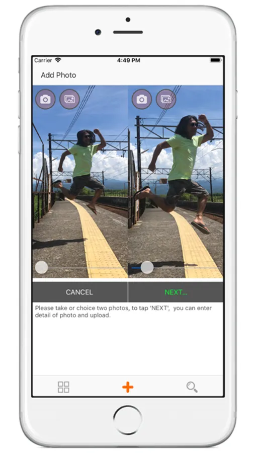 - Upload selected two photos to the cloud with a title and hashtag. *1
