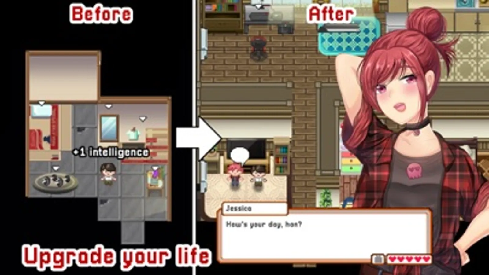 However, you also found so much more in that place! You also found a lot of beautiful girls, friendly people, a wonderful neighborhood, and a place you can call home. Find your place in this pixel art – anime game. There is so much romance here you'll feel like you're trapped in a dating sim!