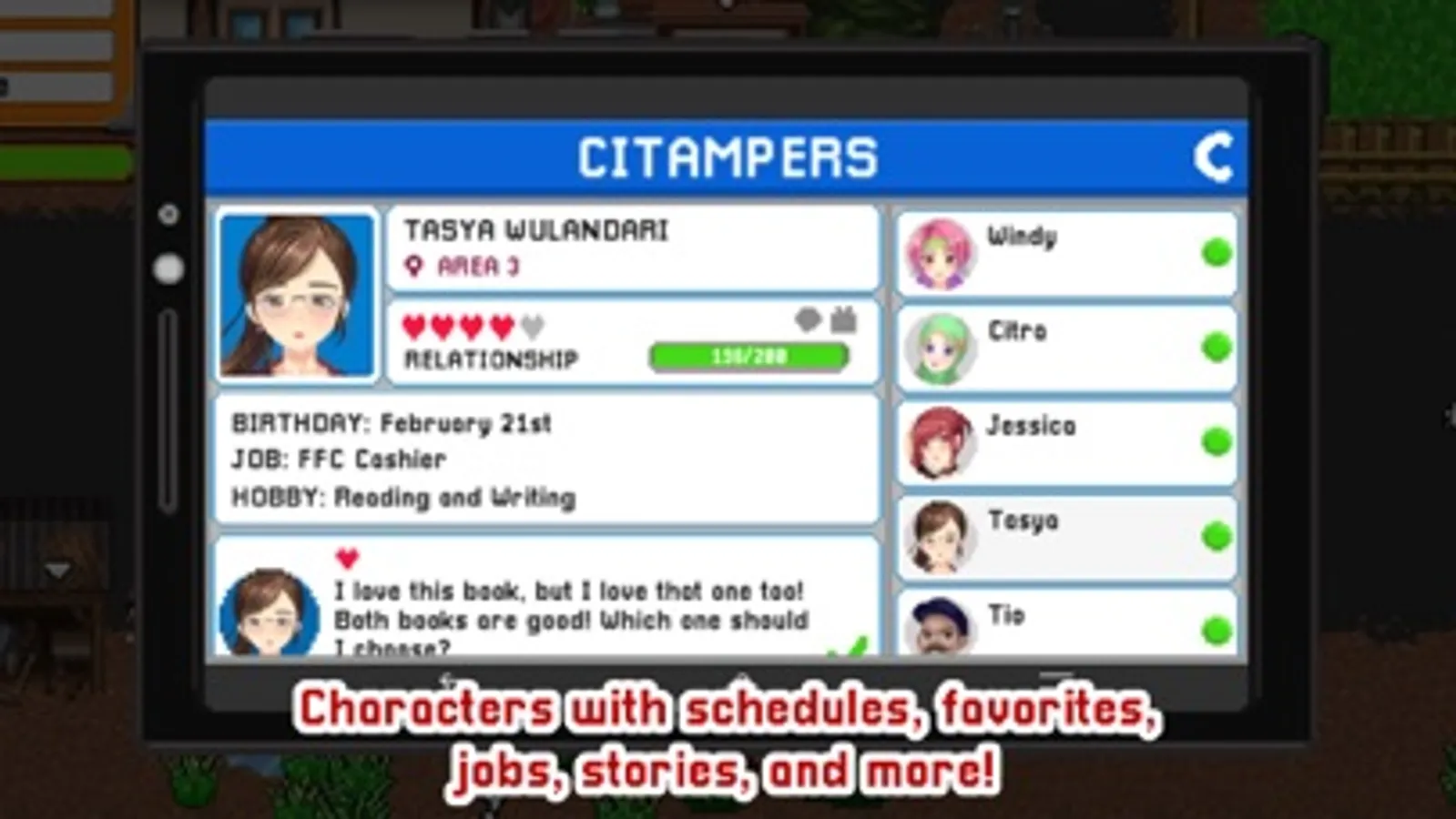 You decided to move to the town of Citampi to pay your parent’s debt and find happiness.
