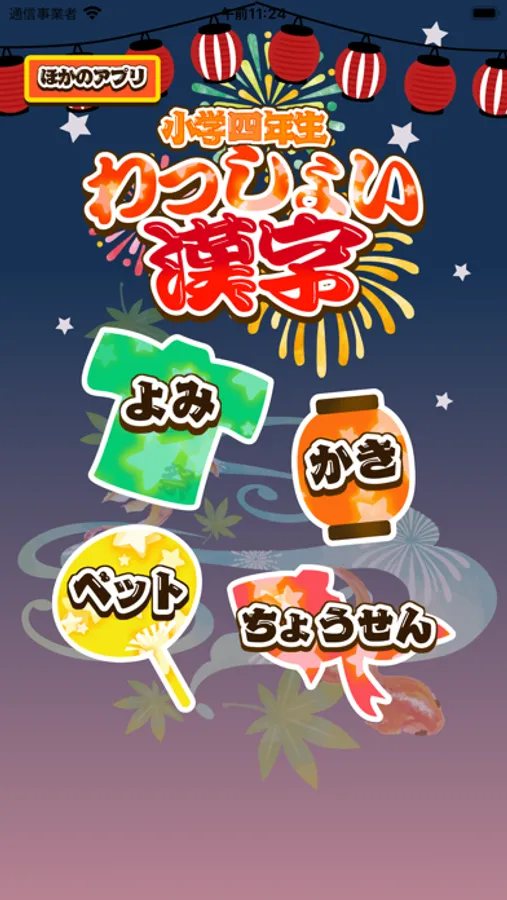 小学4年生で習う漢字404字の「読み方」と「書き」を、ゲーム感覚で楽しく学べる無料の漢字学習アプリです。