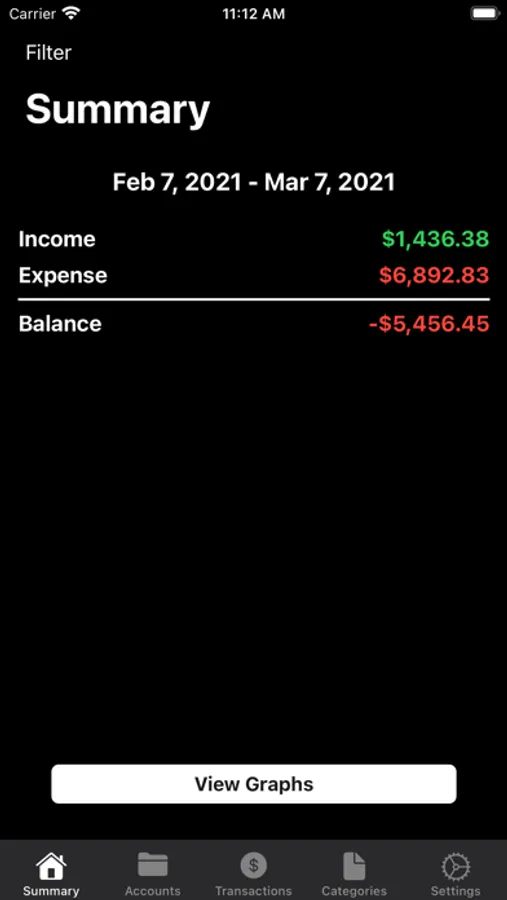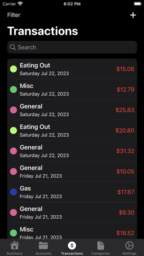 Take control of your finances. Keep track of all of your transactions. All of your transactions are stored on your device. Enter transactions manually, or setup recurring transactions to automatically repeat either monthly or weekly.