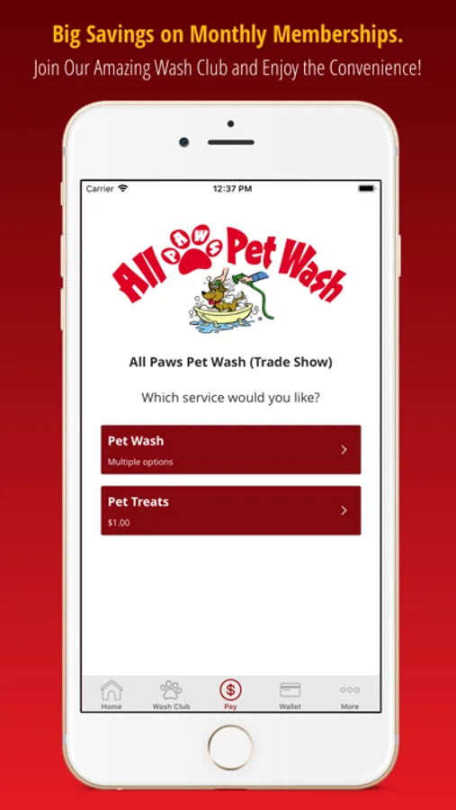 We also offer the first ever pet wash membership program through the All Paws app! Save BIG by joining the All Paws wash club and activate the pet wash machine directly through the app. The app will recognize you as a valid member and let you start washing... it's as easy as that!