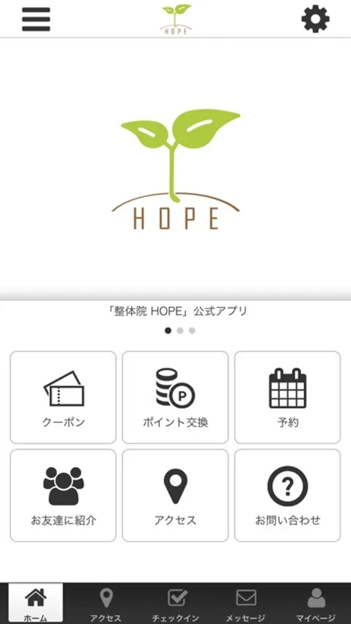 このアプリでは、整体院HOPEの最新情報の受け取りや便利な機能を使う事ができます。