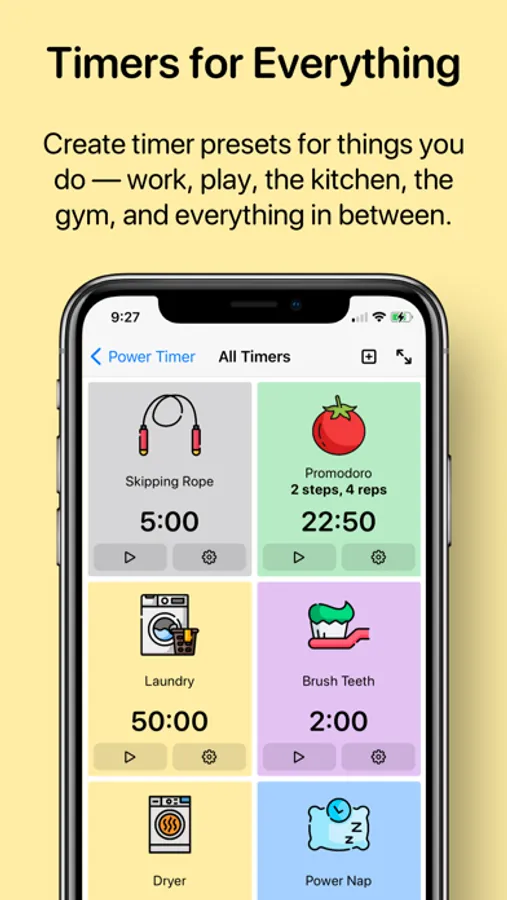 As you set up the timer, you can tell Siri to trigger it with a custom voice command, such as “Doing my laundry” or “Brushing my teeth.” Power Timer has been designed to work with as little touching as possible.