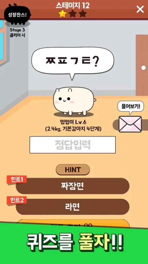 강아지가 내는 기상천외한 초성 퀴즈를 잘 보고 정답을 입력하자!