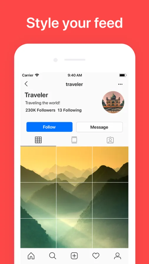 Bring your Instagram profile to life by posting large images that extend over multiple tiles! With Grid Maker, it is easy to create artistic and visually appealing grid layouts for your social media pages. Pick a photo from your Photo Library, select the grid size you desire, and simply save or share the resulting squares. All for free and without any watermarks!
