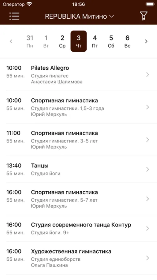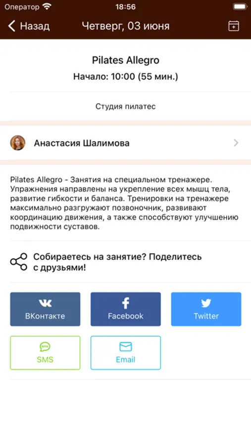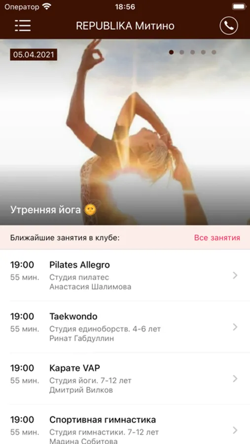 - Получать информацию об отмене занятий, замене тренеров и др.