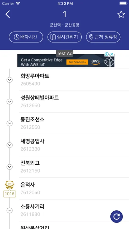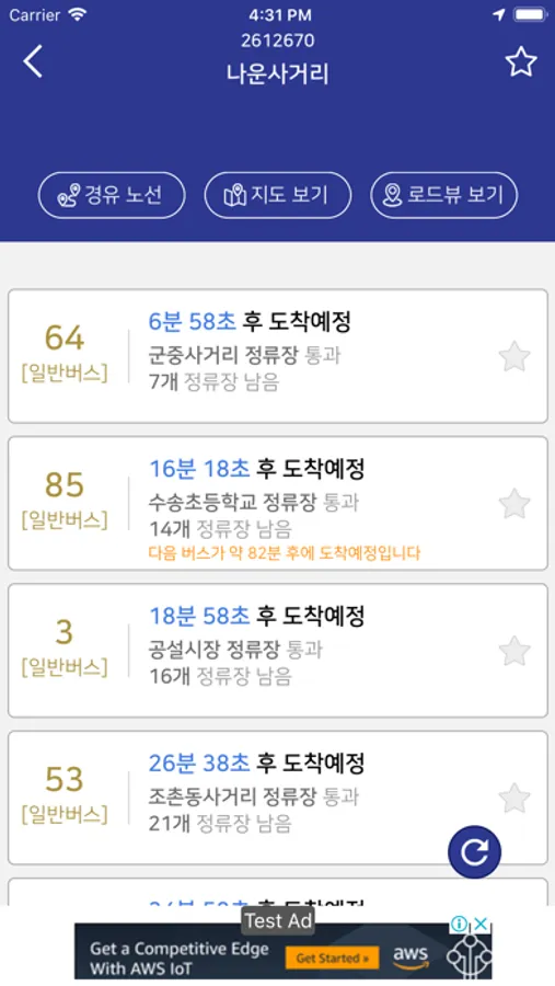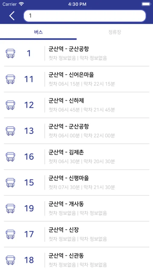 * 버스도착정보는 군산시에서 제공되는 정보이며 다소 오차가 있을 수 있습니다. 이로 인하여 문제 발생 시 개발자와는 무관하오니 이 점 양해 부탁드립니다.