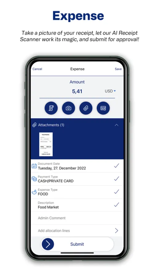 * Our AI Receipt Scanner makes it quick and easy to create expenses.