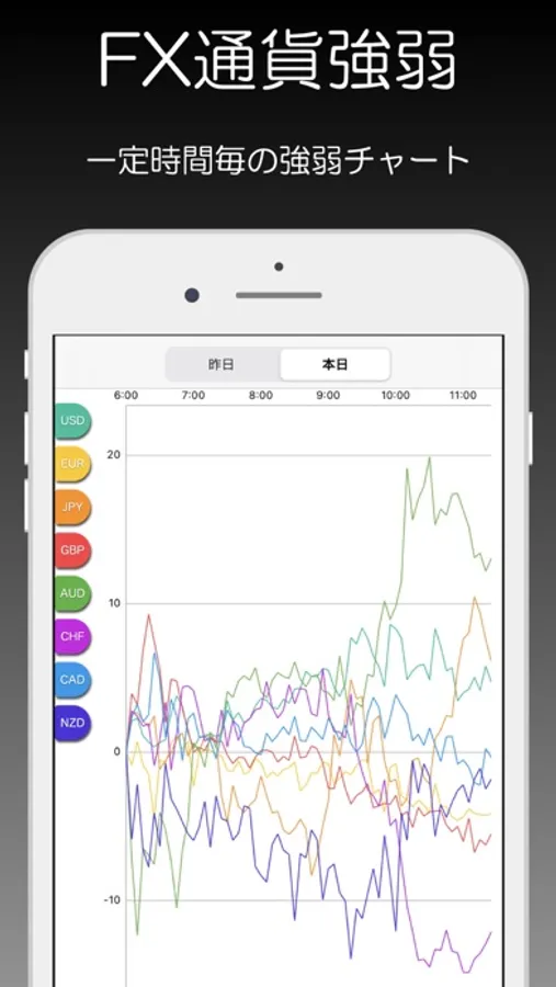表示通貨は、タブでオン・オフが切り替えられるため、トレードのメインとしている通貨など、必要な情報に絞ってグラフを表示させることもできます。