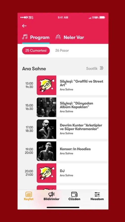 Aynı zamanda festivaller hakkında tüm detaylı bilgileri, katılımcıları, etkinliklerin bilgilerini, konser içeriklerini saat saat görüntüleyebilirsiniz. Festival boyunca tüm haberler anlık olarak cebinize gelir.