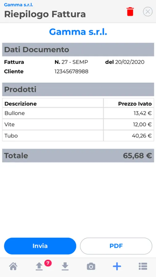 Puoi condividere con un semplice click la stampa PDF delle fatture. Invii il documento con il canale che preferisci (mail, whatsapp, …).