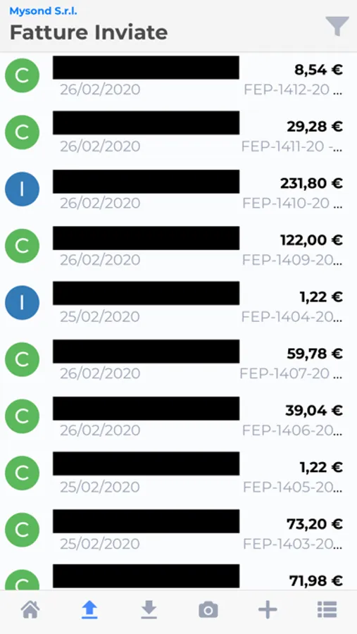 Consulta in ogni momento tutte le tue fatture inviate. Tutti i dati della fattura a tua disposizione (importo, data, numero, destinatario) e puoi aprirla e visualizzarla.