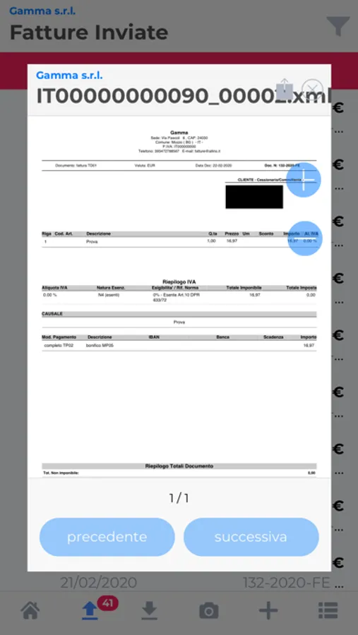 Puoi visualizzare e condividere la stampa PDF delle fatture.