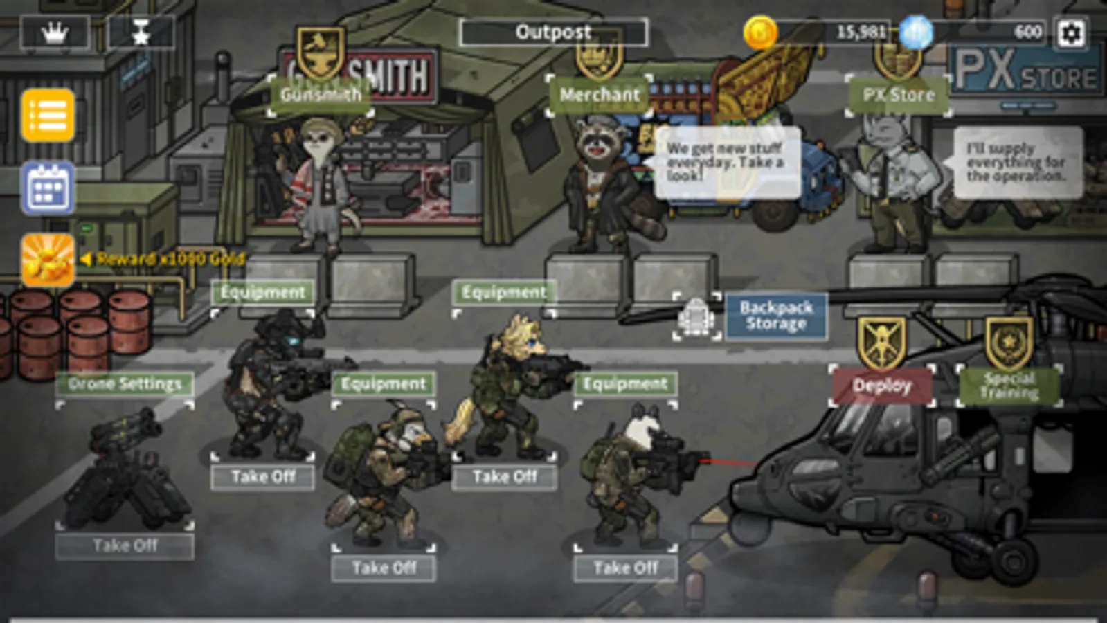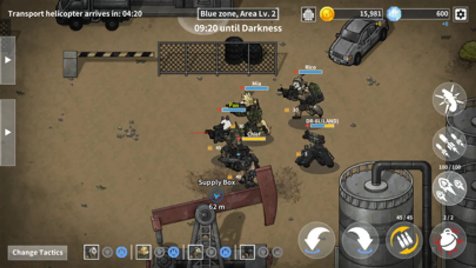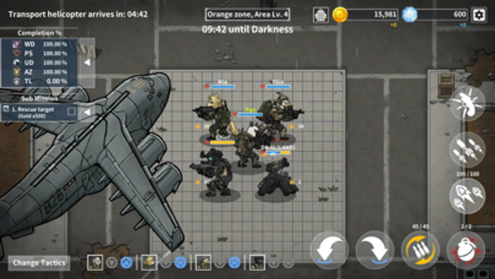 Use the Converging Fire and Drone(DR-6L) attacks effectively to overcome the crisis. Air Drone(DR-2A) doesn't have an attacking feature, but it will difinitely come in handy.