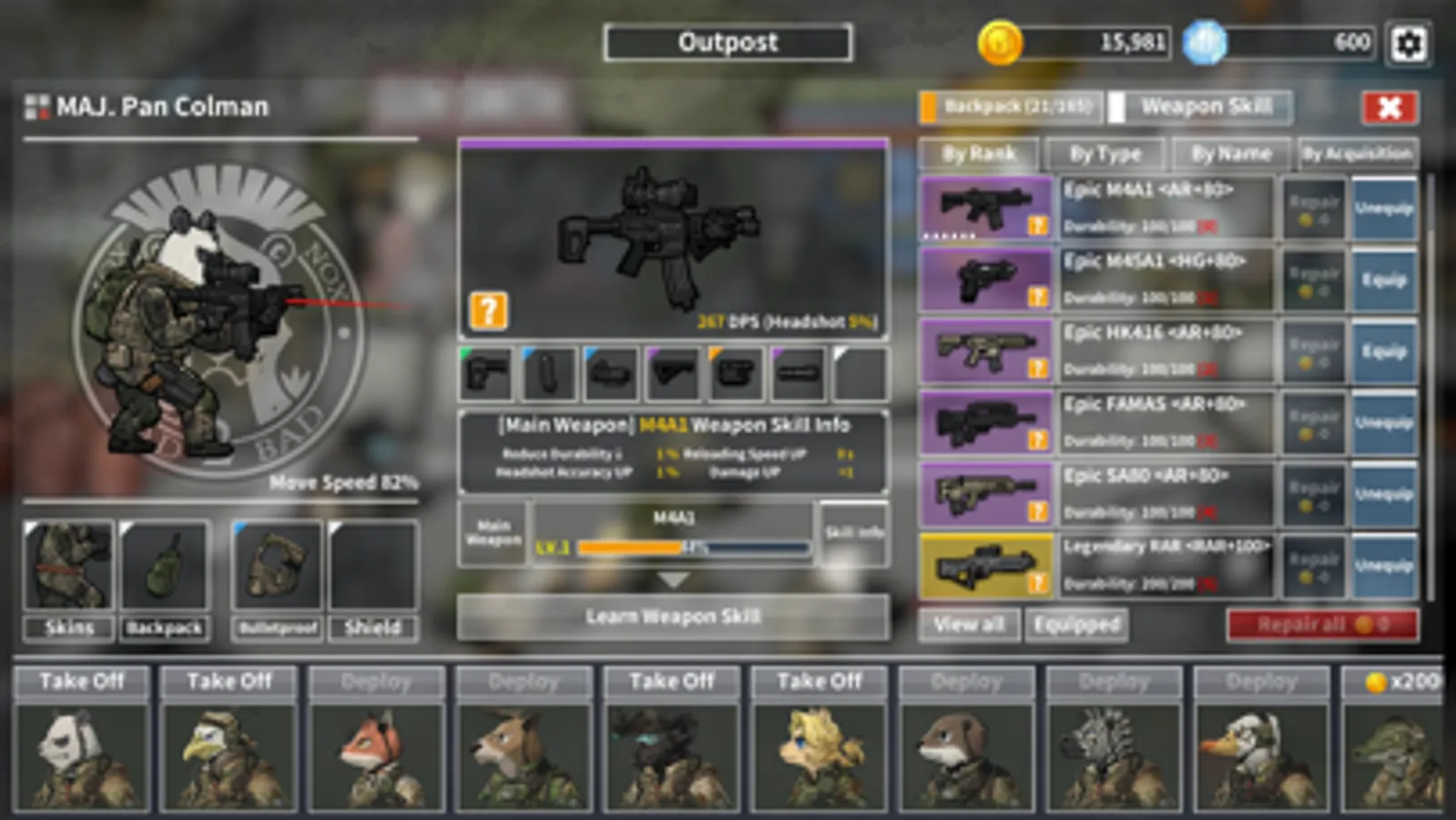 In order to use weapons other than your main weapon effectively, you must learn the respective weapon skills. Learn the skill and increase the proficiency levels to get buffs such as increased attack power, less durability, reload speed up, and headshot accuracy.