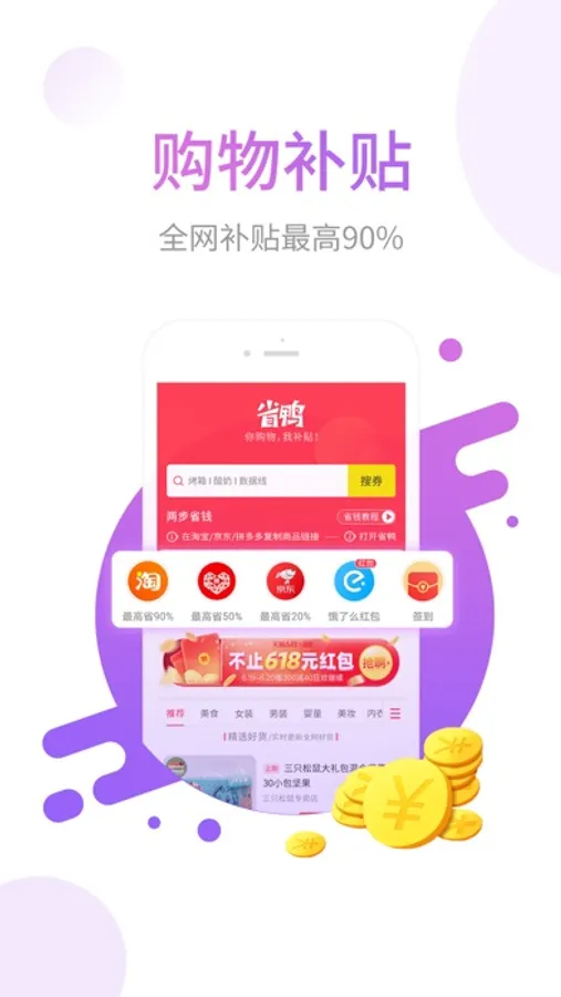 省鸭是一款实用的网购省钱神器,不但有隐藏优惠券,还能领额外补贴!比直接买,省钱可达90%!