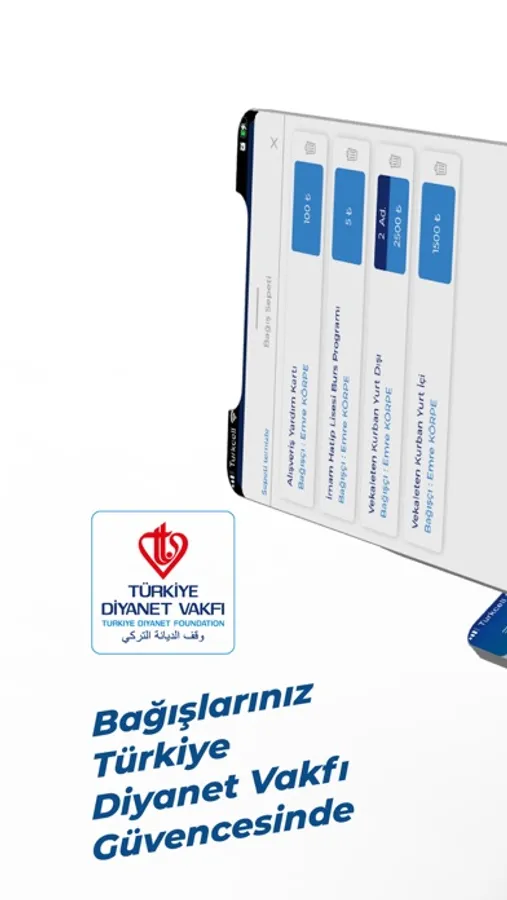 Uygulamamıza üye girişi yaparak geçmiş bağışlarınızı kontrol edebilir ve görüntüleyebilirsiniz.