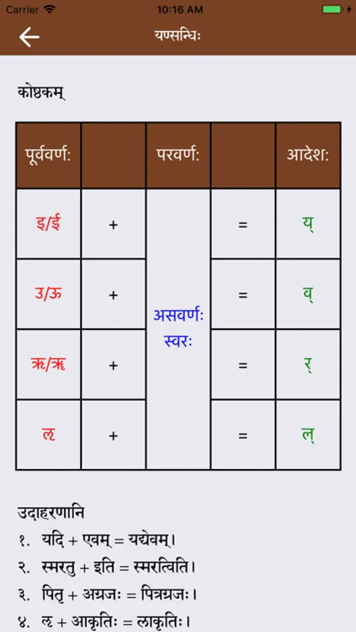 • Explanation of rules in Sanskrit and English for 24 Sanskrit sandhi-s.