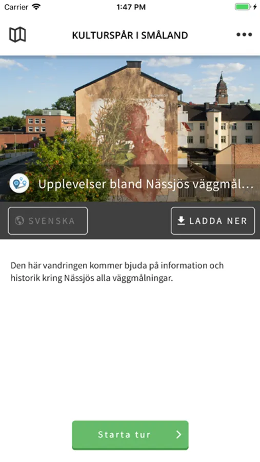 På det första spåret lyfter vi fram väggmålningarna i Nässjö för att sedan bygga på med nya intressanta spår inom den småländska konsten och historien. Du kan gå turerna i den ordning vi planerat men du kan förstås även göra din egen turordning utifrån tid och intresse. Eller till och med sitta hemma i soffan och ”vandra” bland spännande konst och historia.