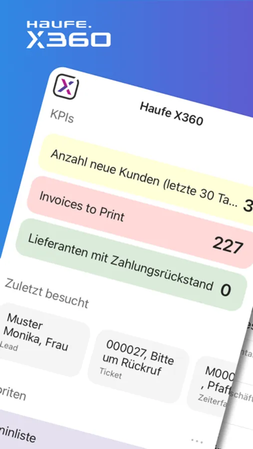 Die neue ERP-Lösung von Haufe speziell für kleine & mittelständische Unternehmen befreit Sie von Komplexität und Verwaltungsaufwand. Mit unserer leistungsstarken ERP-Lösung haben Sie Ihre Warenwirtschaft, Einkauf, Verkauf und Buchhaltung schnell und einfach wieder im Griff. Mit Haufe X360 bilden Sie alle Geschäftsprozesse durchgängig strukturiert und effizient ab. Alle Unternehmensbereiche und Prozesse überblicken Sie ganz einfach dank des übersichtlichen ERP-Systems. Mehr noch: Sie behalten alle wichtigen Geschäftszahlen jederzeit im Blick. Denn die Cloud-Lösung ermöglicht Ihnen flexibles Arbeiten – unabhängig von Standort und Uhrzeit. Dank unserer Cloud-ERP Applikation haben Sie Ihre wichtigsten Kennzahlen immer zur Hand und können von unterwegs einfach und sorgenfrei arbeiten.