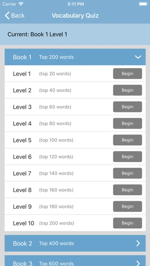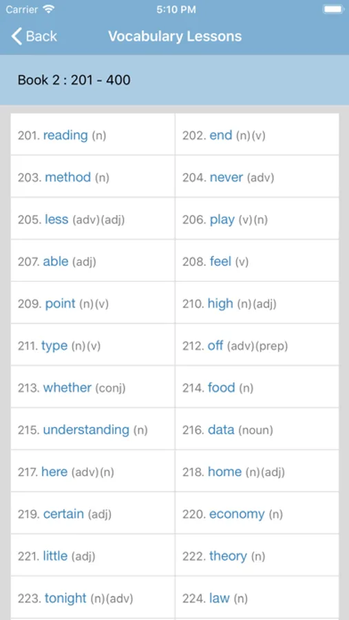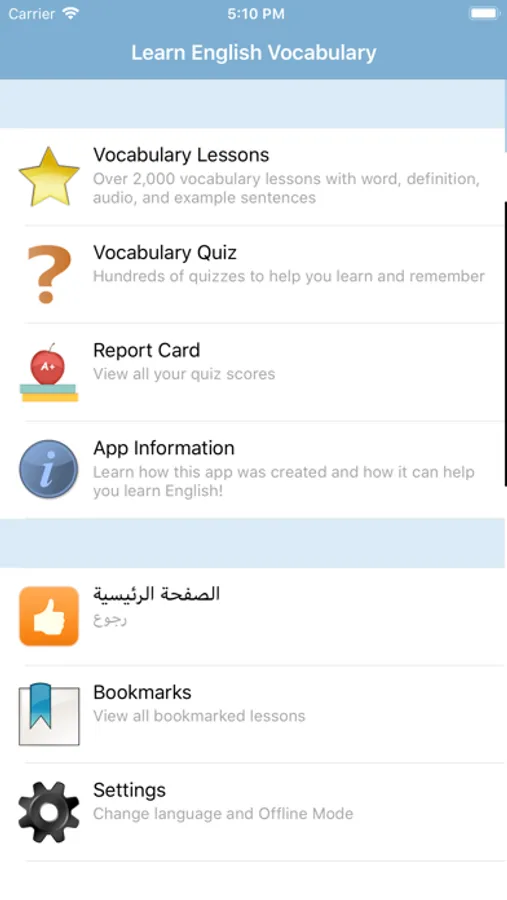 يحتوي التطبيق على الاف الكلمات الانجليزية المرتبة على شكل مجموعات لتسهيل التعامل معها