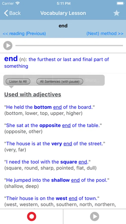 يوفر التطبيق شرح مفصل لكل كلمة مع بيان مواضع استخدامها بالجمل بامثلة عديدة