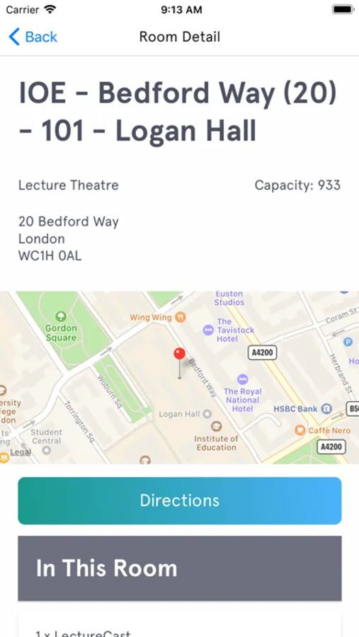 ◆ Find every centrally bookable room at UCL, see how big it is and whether it is currently in use, and then tap to navigate right there.