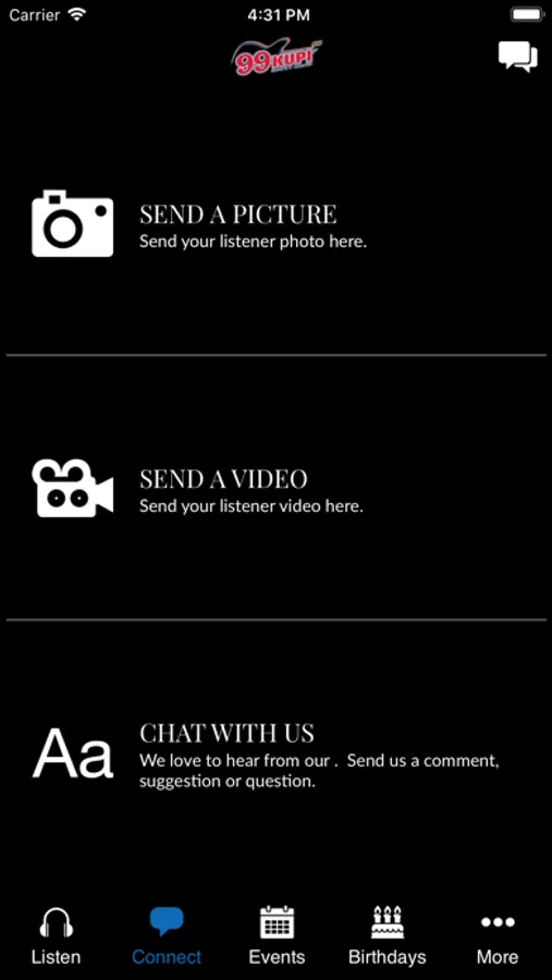 We've brought you everything you love about KUPI in an awesome mobile experience. Listen live on the go, send comments, photos and videos to your favorite DJ's. Interact in real-time with DJs and other listeners.