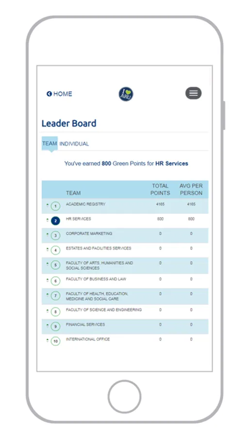 This app is the companion for the ARUgreen programme, designed to encourage staff to take positive actions that improve sustainability and wellbeing at the University.