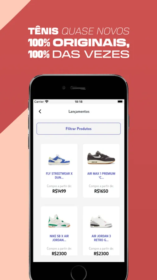 No caso do tênis que você adquiriu não ser aprovado em nossa avaliação, você será ressarcido em 100% do valor do produto imediatamente.