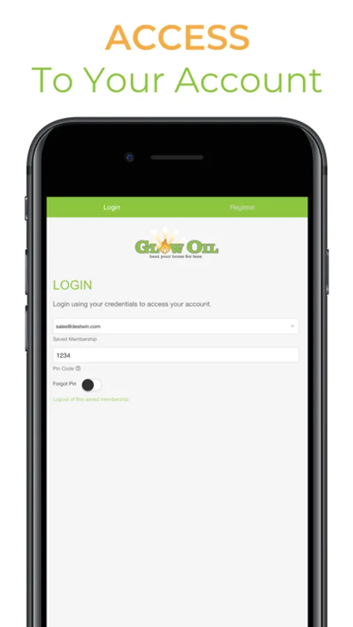 Welcome to the Glow Oil App! From here you can view all your account information, pay for your deliveries, and schedule deliveries.