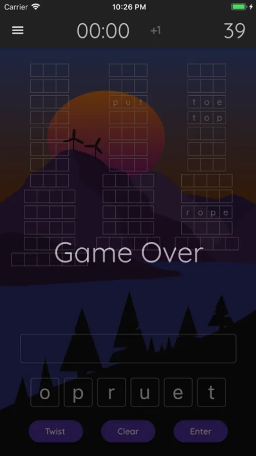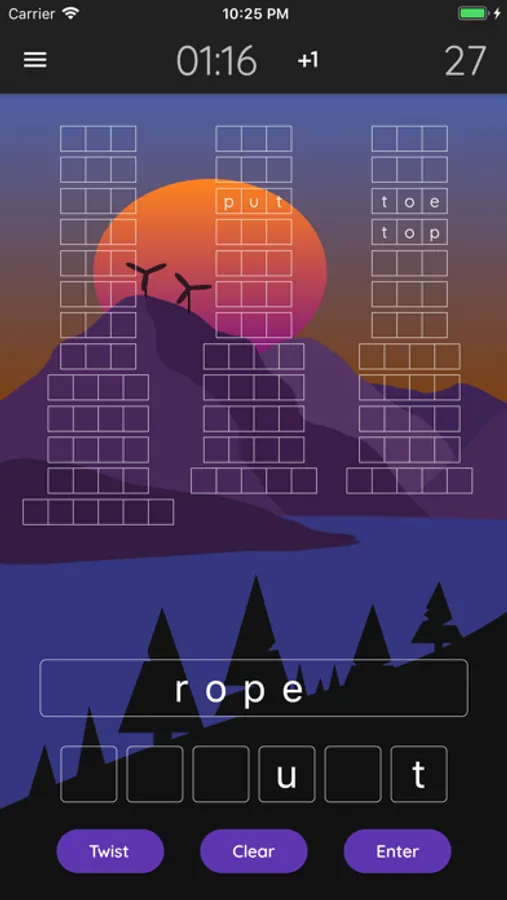 Word Twist is a game where you are given 6 letters and you have to build valid English words from them until the time runs out.